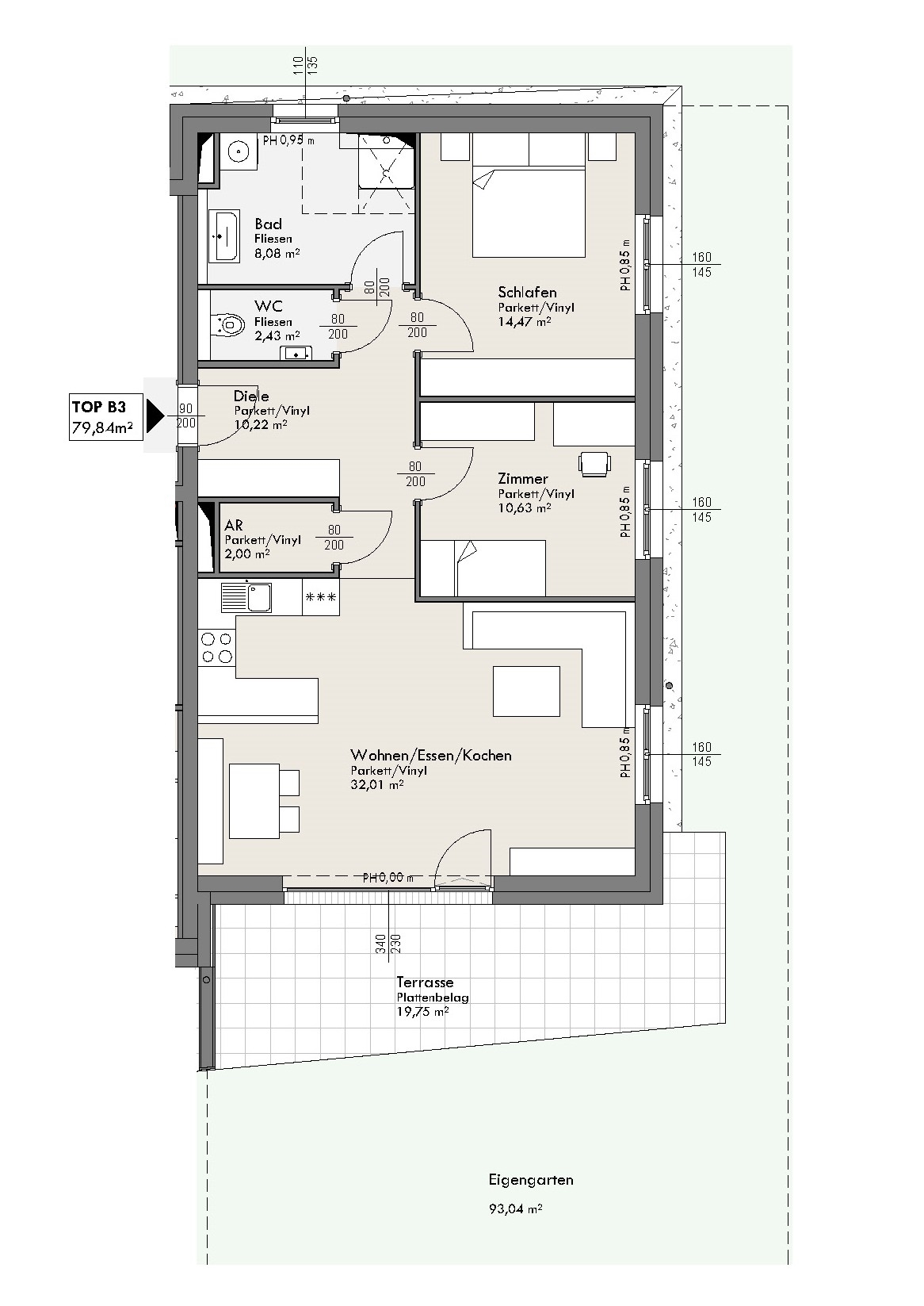 | B3 | EG | 3 | 80 m² | 20 m² | 93 m² | - | 2 | RESERVIERT |